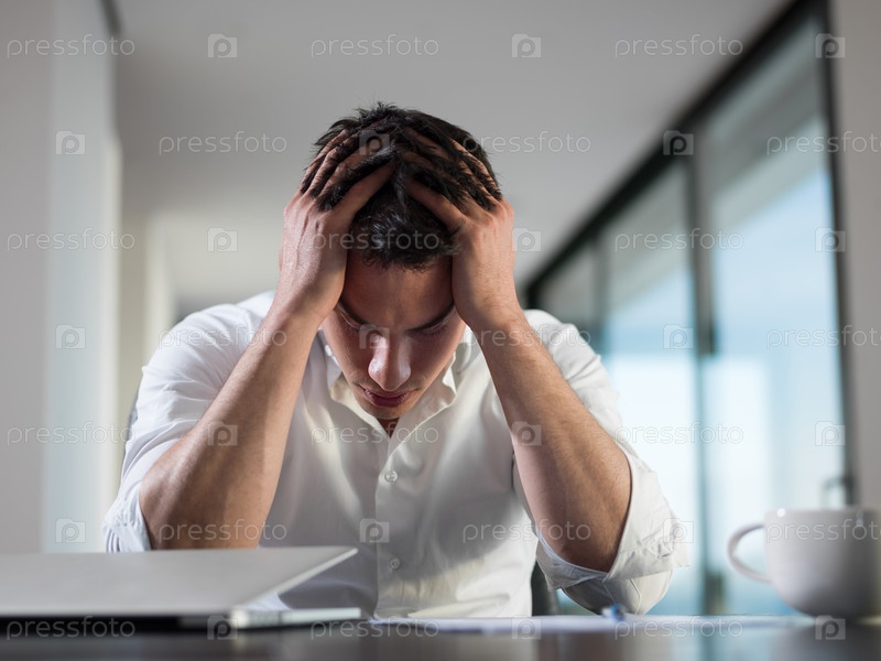 Разочарованный молодой мужчина перед ноутбуком