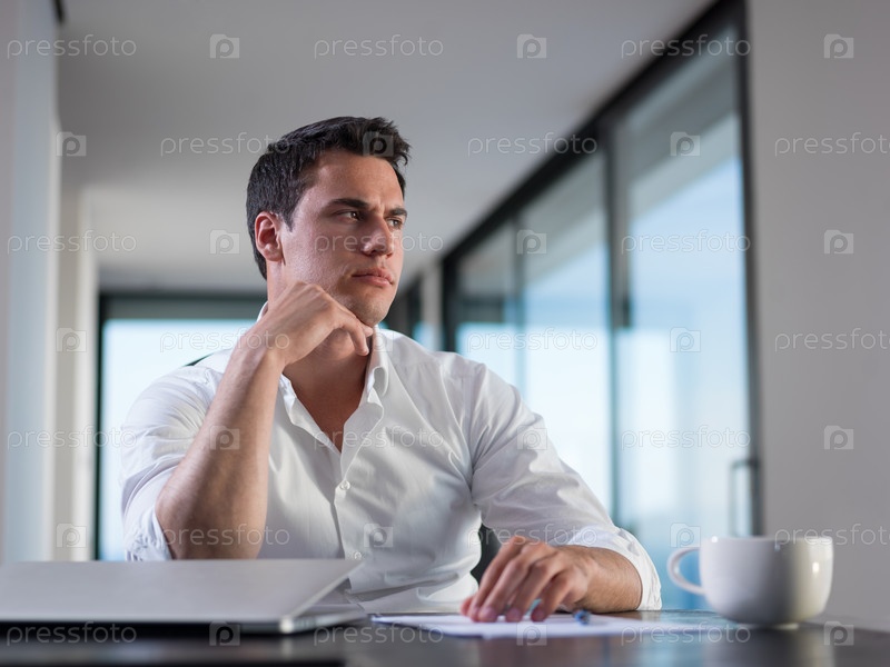Деловой мужчина работает дома