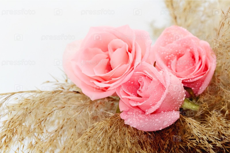 Розовые розы с каплями воды на лепестках
