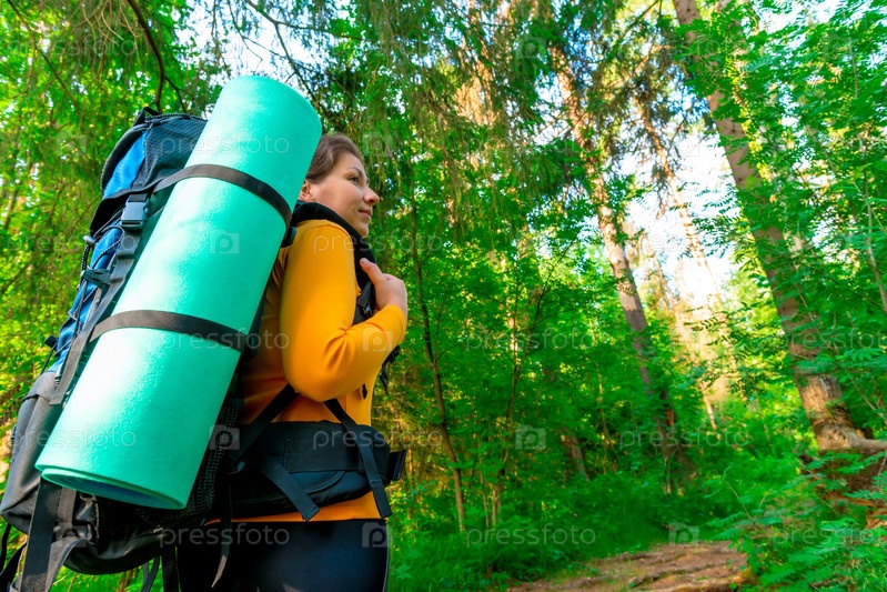 Туристка в лесу