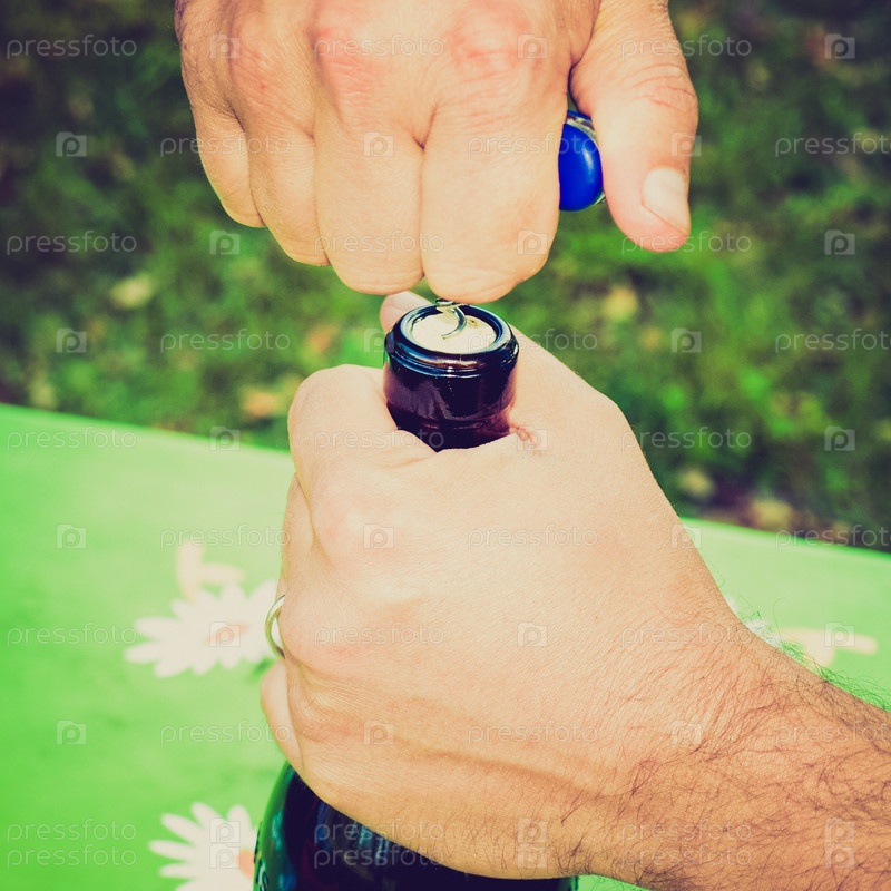 Рука открывает бутылку вина