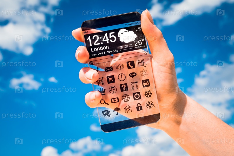 Смартфон с прозрачным экраном в руке