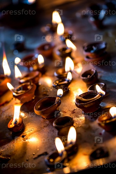 Зажженные свечи в индийском храме