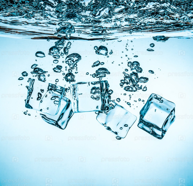 Кубики льда под водой