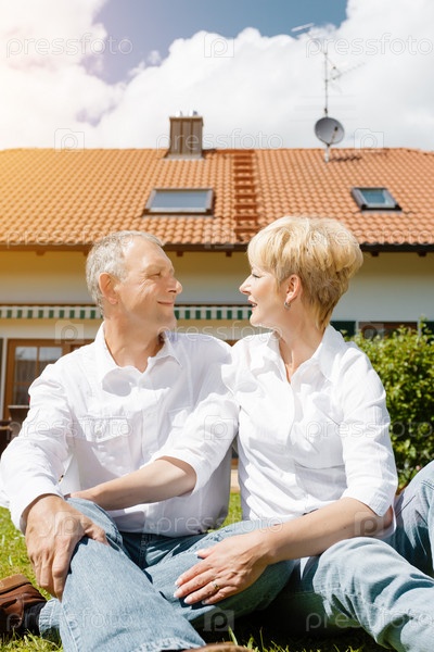 Пожилая пара у дома