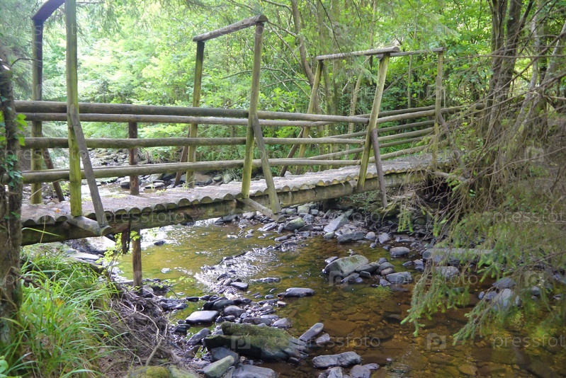 Река с мостом в лесу