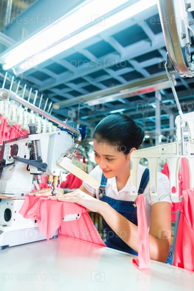 Индонезийская швея на текстильной фабрике