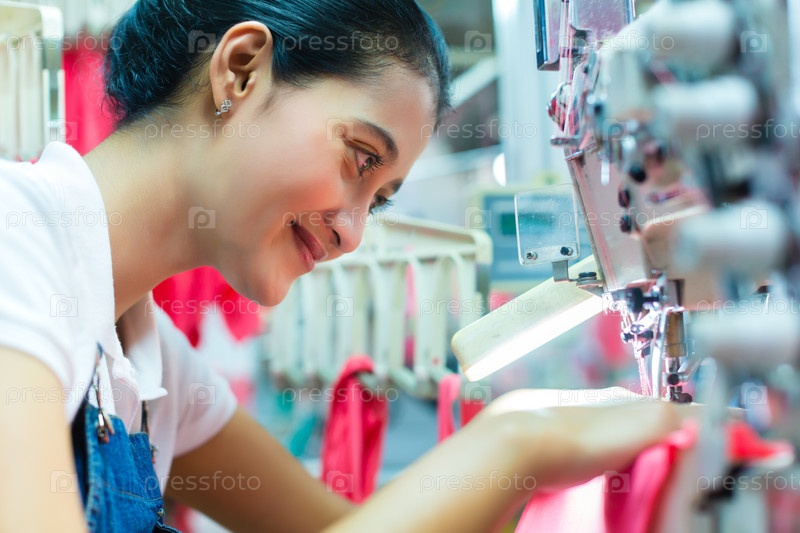 Индонезийская швея на текстильной фабрике