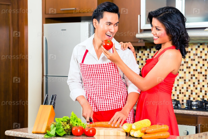 Азиатская пара на кухне