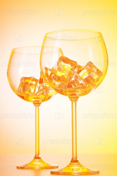 Стеклянные бокалы со льдом на желтом фоне