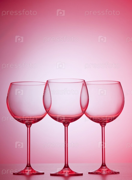 Стеклянные бокалы на розовом фоне
