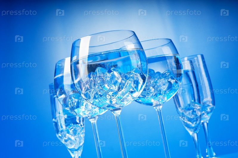 Вода со льдом в стеклянных бокалах