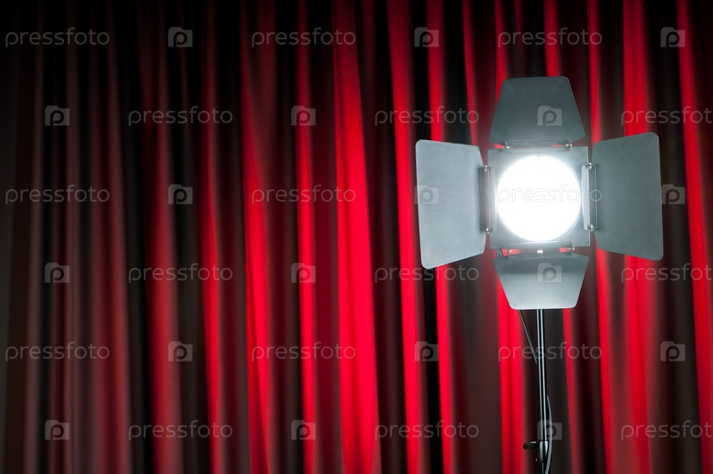Осветительное оборудование на фоне занавеса
