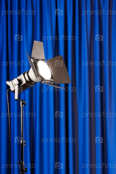 Осветительное оборудование на фоне занавеса