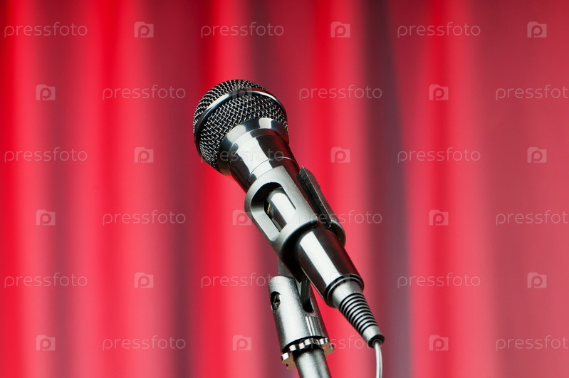 Микрофон на фоне занавеса