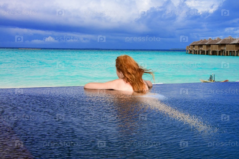 Красивая женщина в бассейне