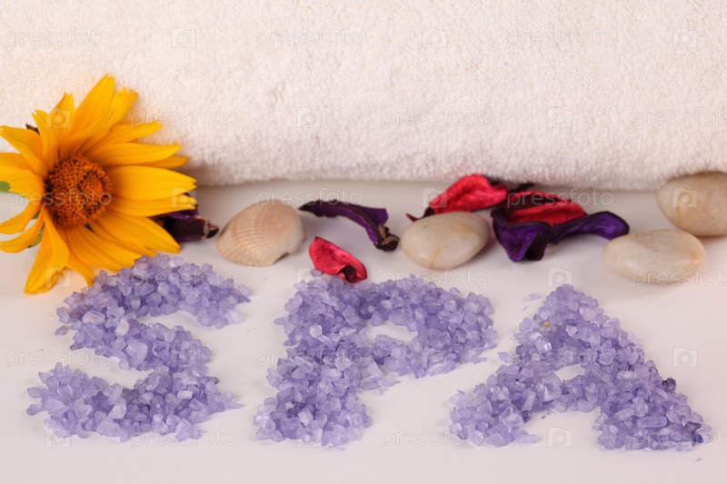 Слово SPA, выложенное кристаллами соли для ванны