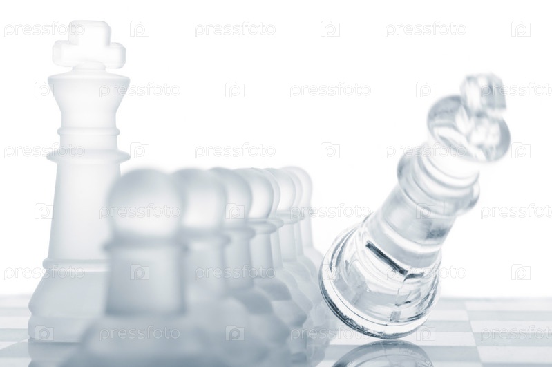 Шахматные фигуры из стекла на белом фоне