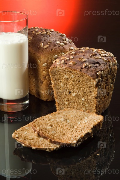 Бородинский хлеб и стакан молока