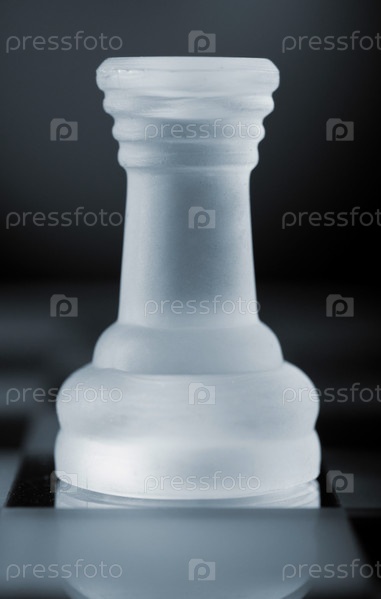 Белая прозрачная шахматная ладья на игровом поле в темноте