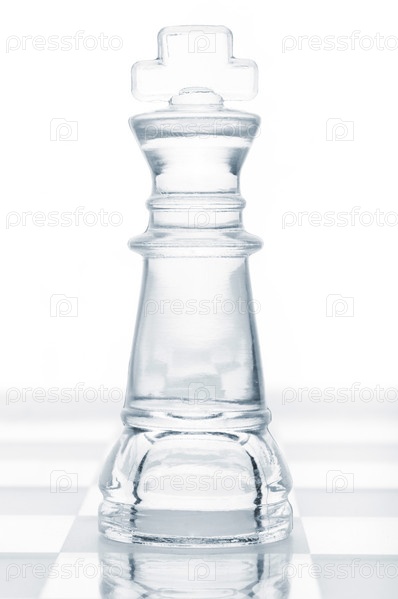 Стеклянный король на шахматном поле на белом фоне