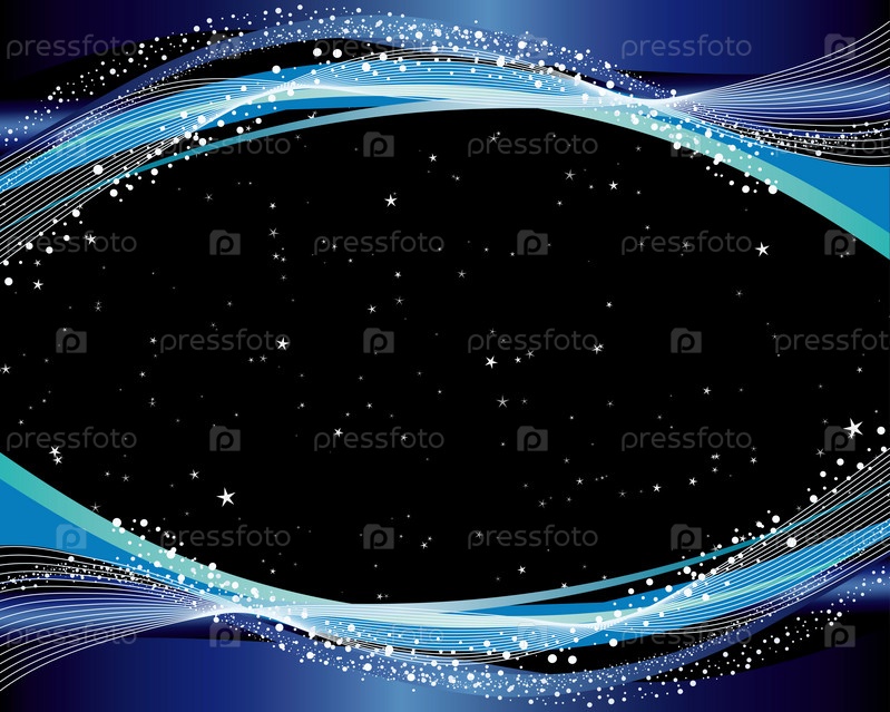 Черное звездное небо в обрамлении плавных синих линий