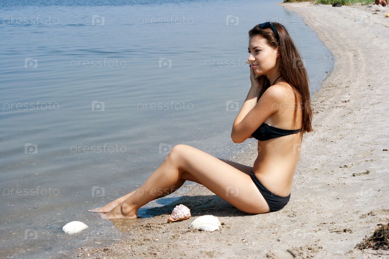 Молодая женщина с ракушкой на пляже