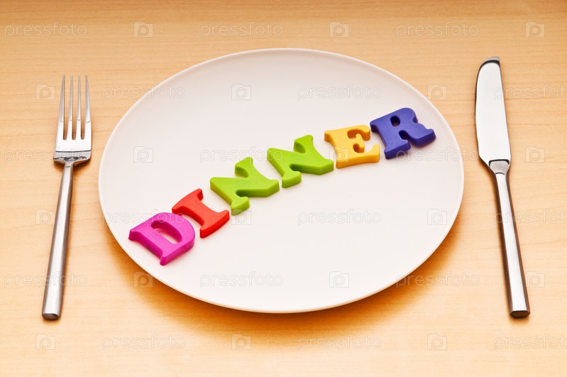 Тарелка с буквами DINNER на столе