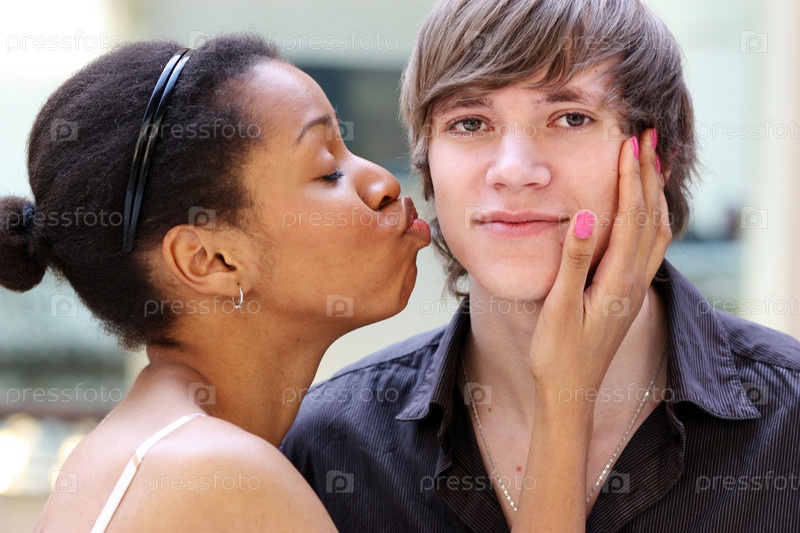 Женщина целует мужчину