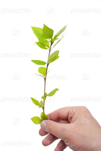 Рука держит зеленый росток
