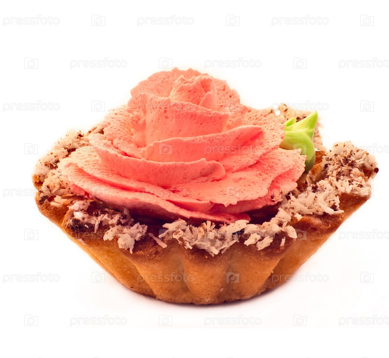 Пирожное в форме корзиночки с кремом и кокосовой стружкой