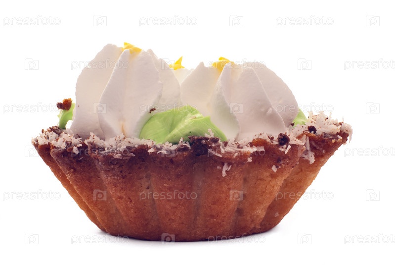 Пирожное в форме корзиночки с кремом и кокосовой стружкой