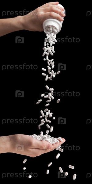 Рука высыпает таблетки из банки