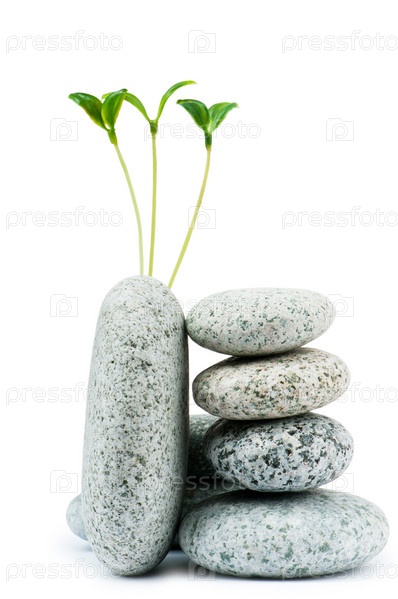 Зеленые ростки на гальке