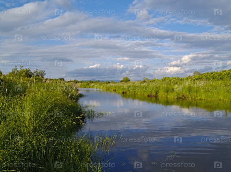 Река под пасмурным небом