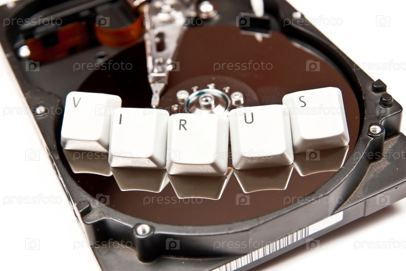 Жесткий диск со словом 'VIRUS', изолированный на белом фоне