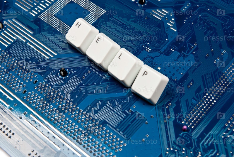Синяя панель компьютера со словом 'Помощь'
