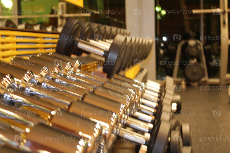 Металлические гантели в спортзале