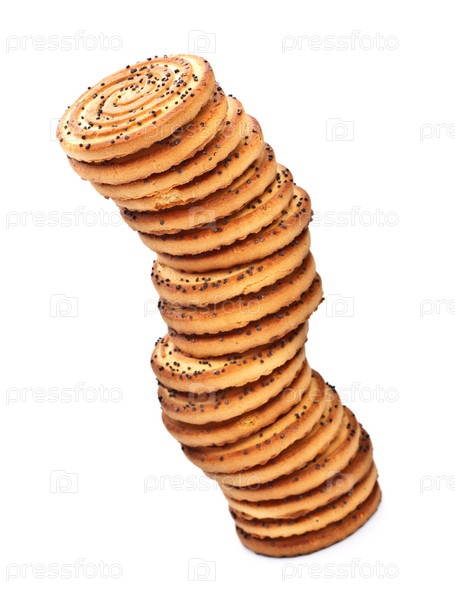 Башня из круглого печенья с маком на белом фоне