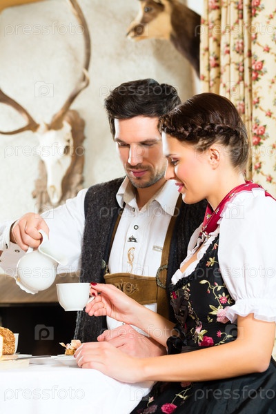 Молодая пара в охотничьем домике