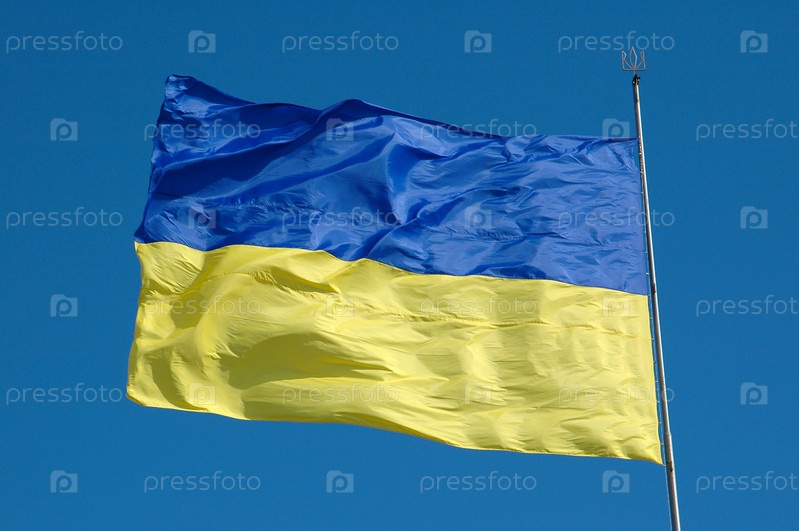 Флаг Украины на фоне голубого неба