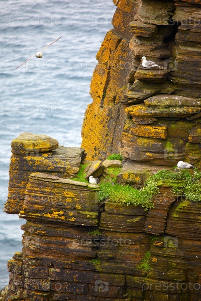Птицы Фулмар на скалах