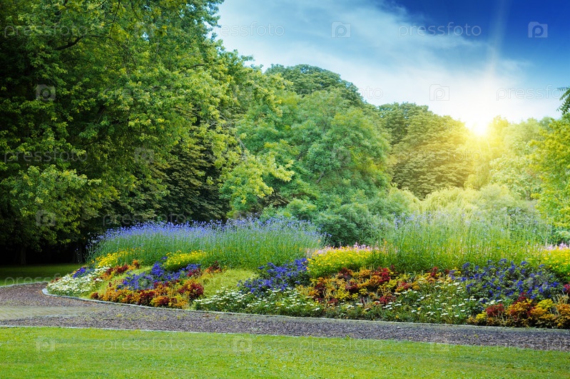 Восход солнца в летнем парке