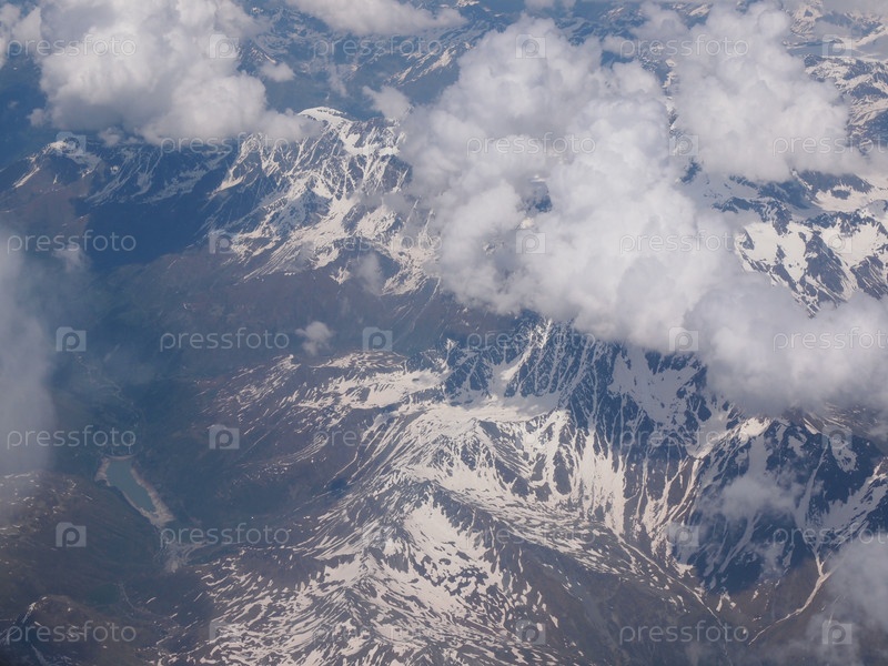 Вид с воздуха на облака над Альпами