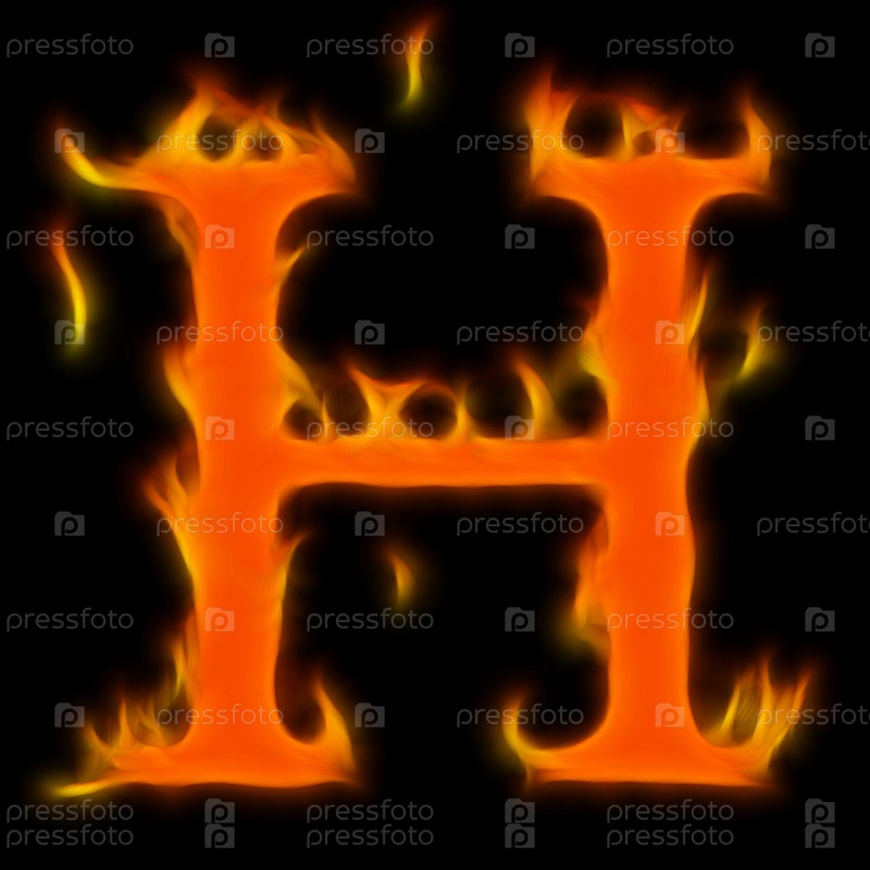 Абстрактный символ алфавита, имитируемый пламенем на черном фоне