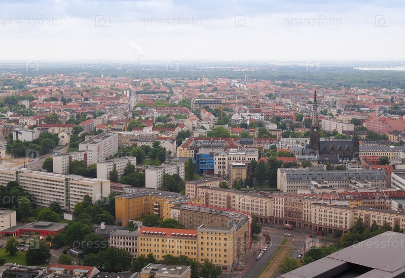 Аэрофотосъемка города Лейпциг в Германии