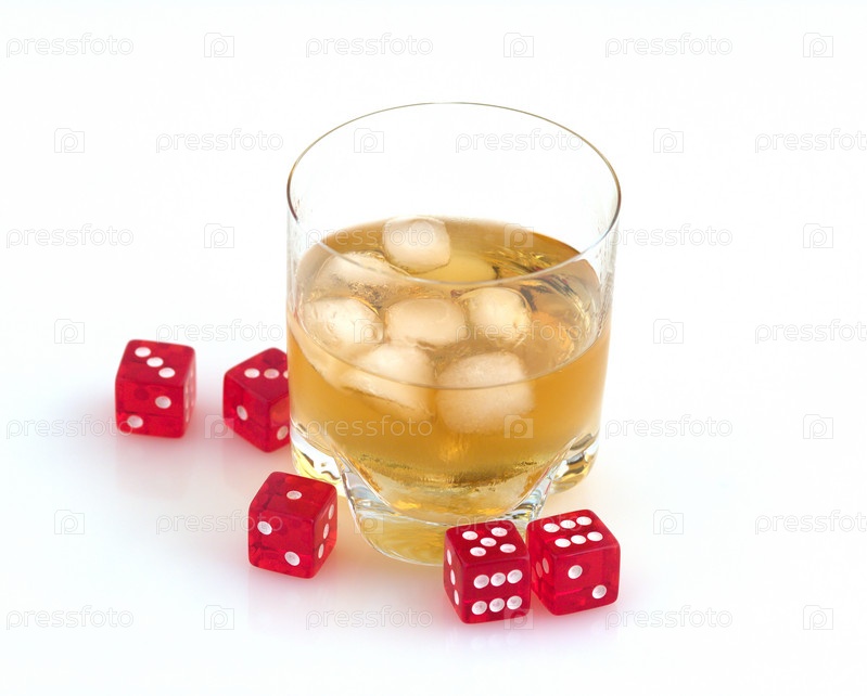 Близкий снимок бокала виски с кубиками льда на белом блестящем фоне