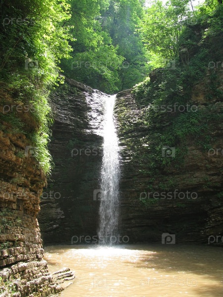 Водопад в горах Кавказа летом