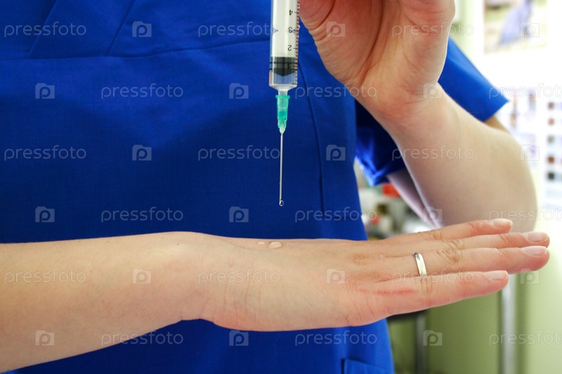 Врач держит шприц в руке