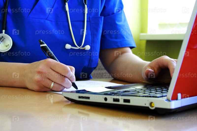 Врач со стетоскопом пишет историю болезни